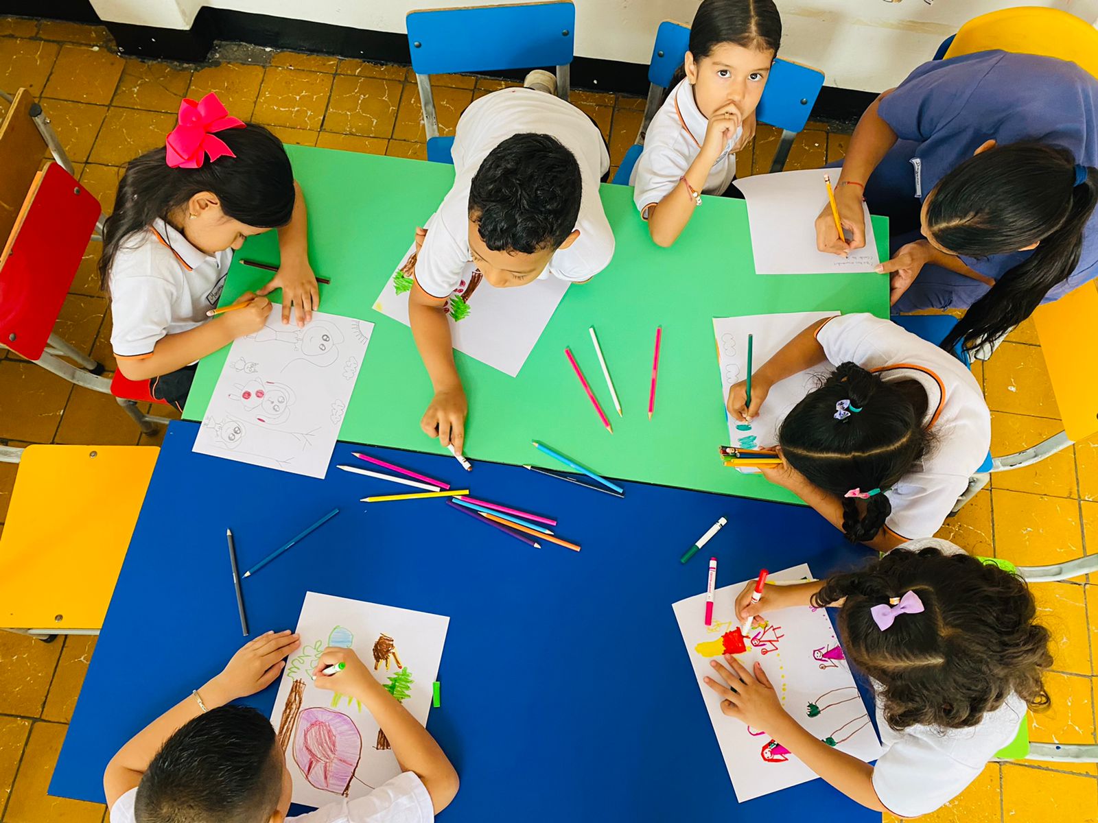 El 19 y 20 de septiembre de 2022, en el Centro de Desarrollo Comunitario San Francisco de Asís en Cali, se realizó el primer taller de nuestro proyecto, donde niños y niñas de grado transición se sumergieron en la historia natural de Colombia. Con el apoyo de las docentes Luz Piedad Castellanos, Diana Isabel Ayala, Diana Marín y dos estudiantes co -investigadoras de la Universidad de San Buenaventura, los niños y niñas exploraron fuentes primarias a través de fotografías y pinturas. Este taller no solo estimuló su curiosidad histórica, sino que también les permitió reflexionar sobre su propio rol en la construcción de la historia.